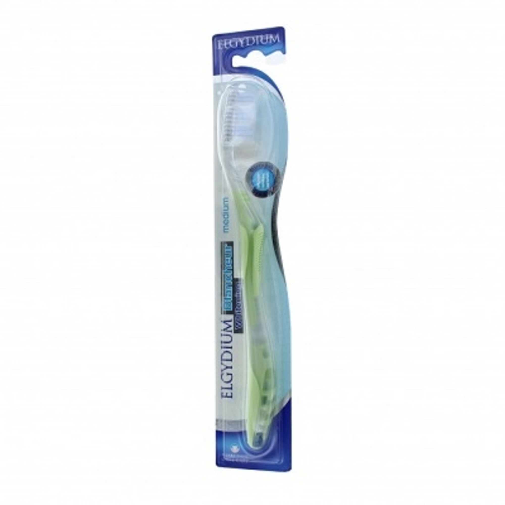 La Brosse à Dents Medium d'ELGYDIUM Blancheur permet un brossage parfait des dents. Elle est dotée : ? D'un système microbilles. ? Des microbilles ultra polissantes agissant en profondeur pour blanchir vos dents sans agresser l?émail dentaire. ? D'une manche ergonomique et flexible pour un confort d'utilisation. ? D'un capuchon de protection. La Brosse à Dents Medium ELGYDIUM Blancheur permet d?éliminer plus de 40 % des taches et colorations dentaires.