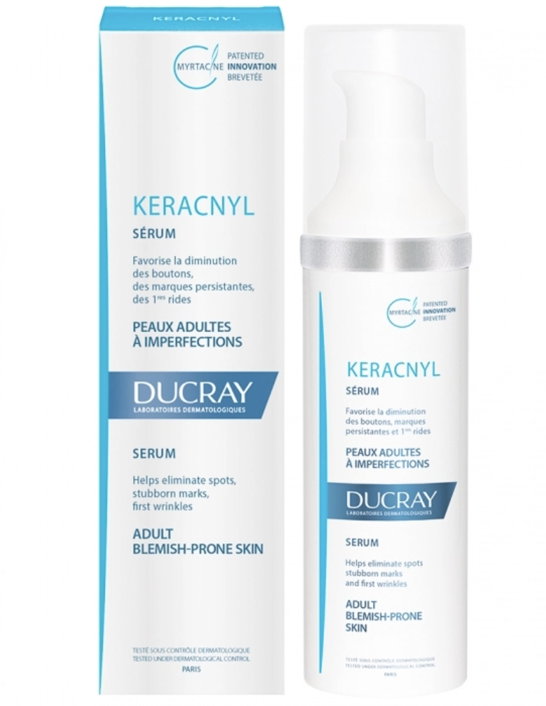 Keracnyl Sérum est un véritable soin quotidien qui combine des actifs innovants et dermatologiques de référence, pour offrir des performances inédites aux femmes adultes dont la peau présente des imperfections. Il permet une triple action : anti-imperfections, anti-marques, anti-âge. Grâce à sa galénique "sérum lacté" Keracnyl sérum relève le défi d'allier efficacité et plaisir d'utilisation.