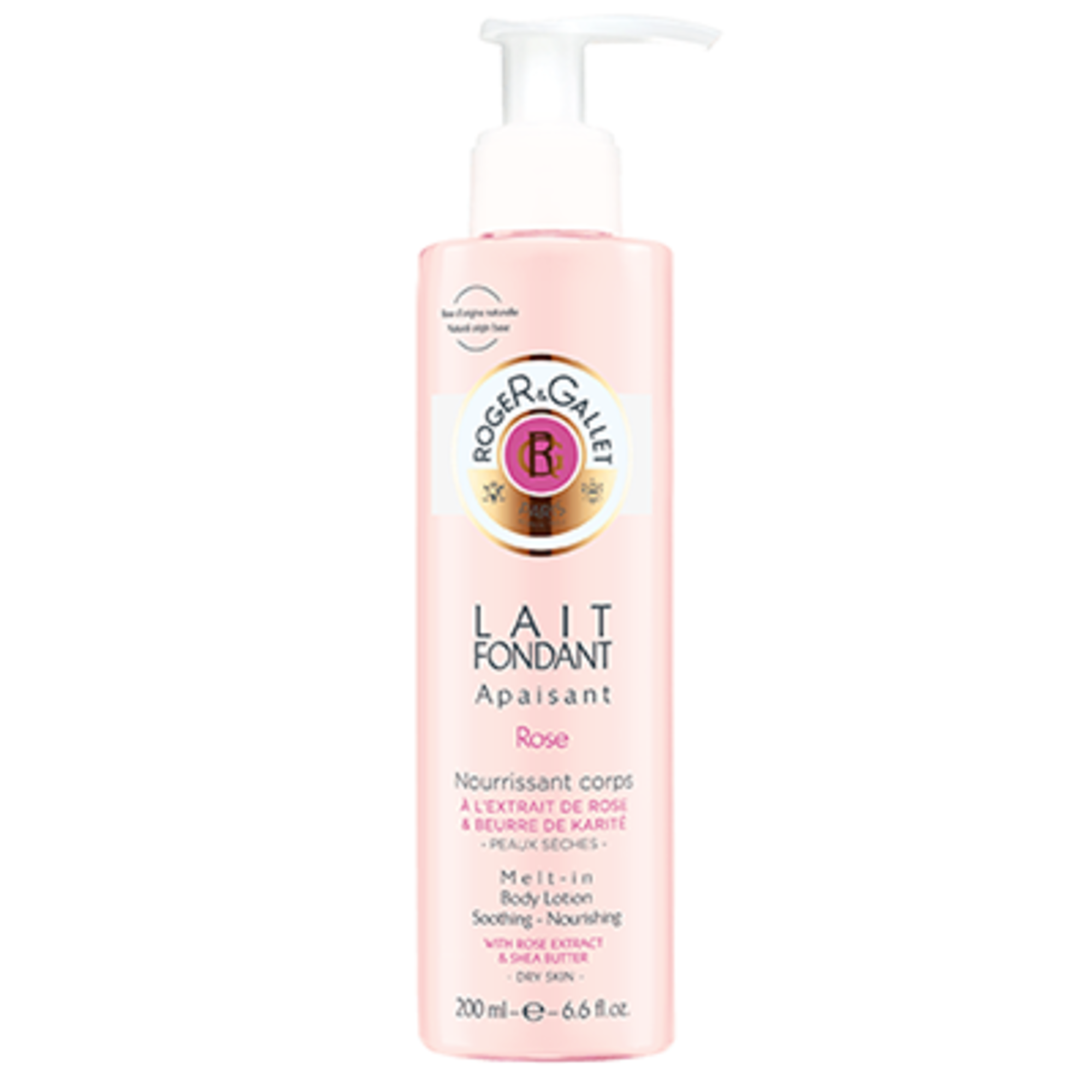Le Lait Fondant Apaisant de ROGER & GALLET ROSE est un soin conçu pour les peaux normales à sèches. Fluide, doux et non gras, à l'extrait naturel de rose du Népal et au lait d'amande, il hydrante durablement votre épiderme. Hydratée et satinée, votre peau retrouve souplesse, douceur et élasticité avec le Lait Fondant Apaisant ROGER & GALLET ROSE.